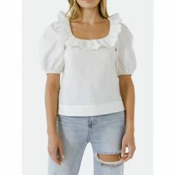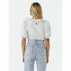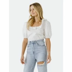 U-neckline puff sleeve top is the perfect must-have. Enjoy the modernized look of this top, made of high-quality 100% cotton with a ruffled boat neckline, puff sleeves, and back keyhole for that perfect party look.