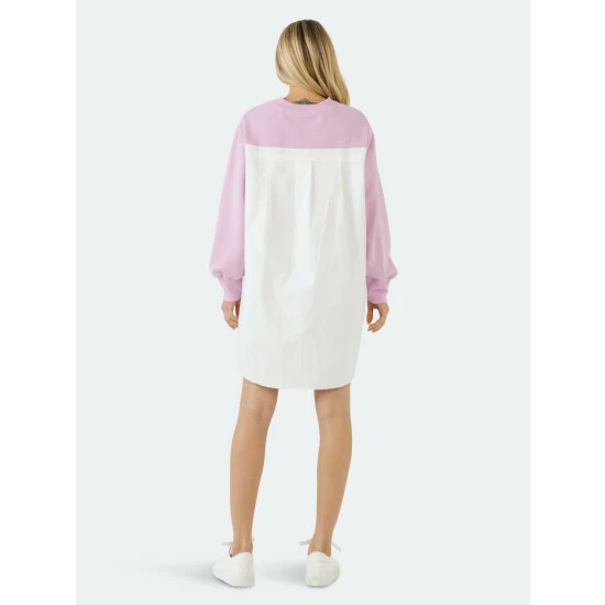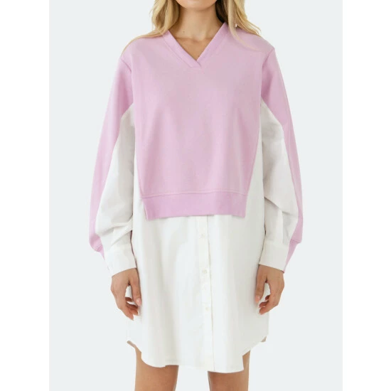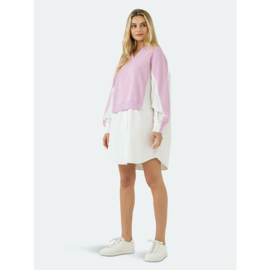 This v-neck sweatshirts dress with poplin detail is everything you need and more. The v-neckline is figure-flattering and the long sleeves give the dress a touch of elegance. The dress is lined for your comfort.
