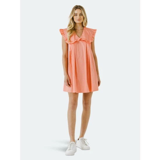 – Collar detail- Pleated detail- Mini dress- Sleeveless- Total length: 35″, Bust: 38″